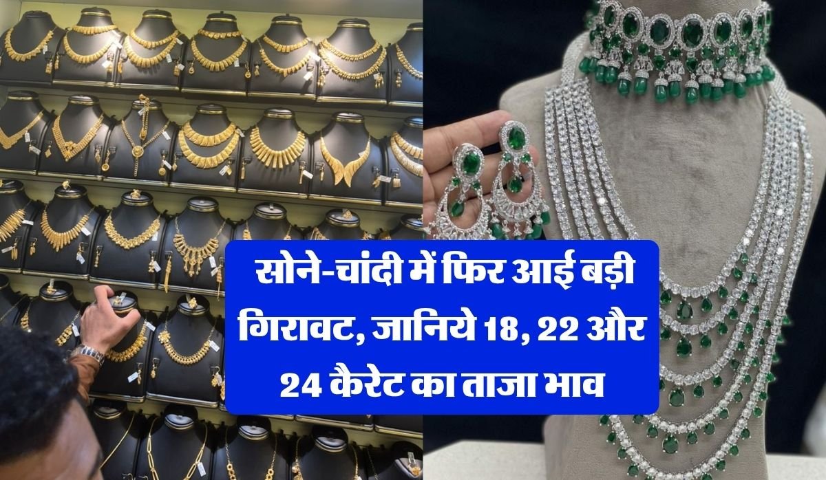 Gold Silver Rate – सोने चांदी में जबरदस्त उछाल के बाद एक बार फिर बड़ी गिरावट देखने को मिल रही है। कल यानी बुधवार को सोने चांदी में तेजी दर्ज की गई थी, जबकि आज बाजार खुलते ही दोनों कीमती धातुओं की रेट साथ में आसमान से सीधे जमीन पर आ गिरे हैं। अगर आप सोने चांदी की खरीद करने की सोच रहे हैं तो आज का ताजा भाव जरूर चेक करें।