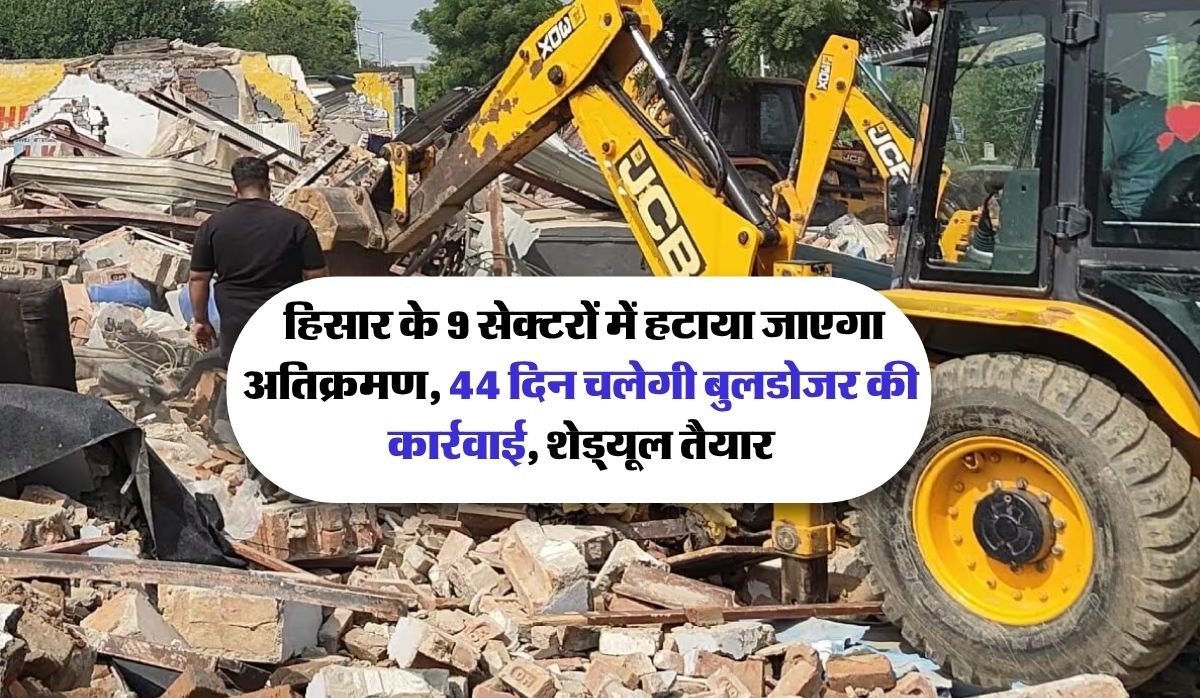 Hisar News : अब हरियाणा के हिसार जिले में अवैध निर्माण को हटाने और शहर के विकास को नई दिशा देने के लिए शासन ने 44 दिन बुलडोजर की कार्रवाई (hisar bulldozer action) करने का ऐलान किया है। अब जल्द ही हिसार के इन 9 सेक्टरों में अतिक्रमण हटाया जाने वाला है। इसके लिए शासन ने शेड्यूल तैयार कर लिया है। खबर में जानिए इस बारे में विस्तार से-