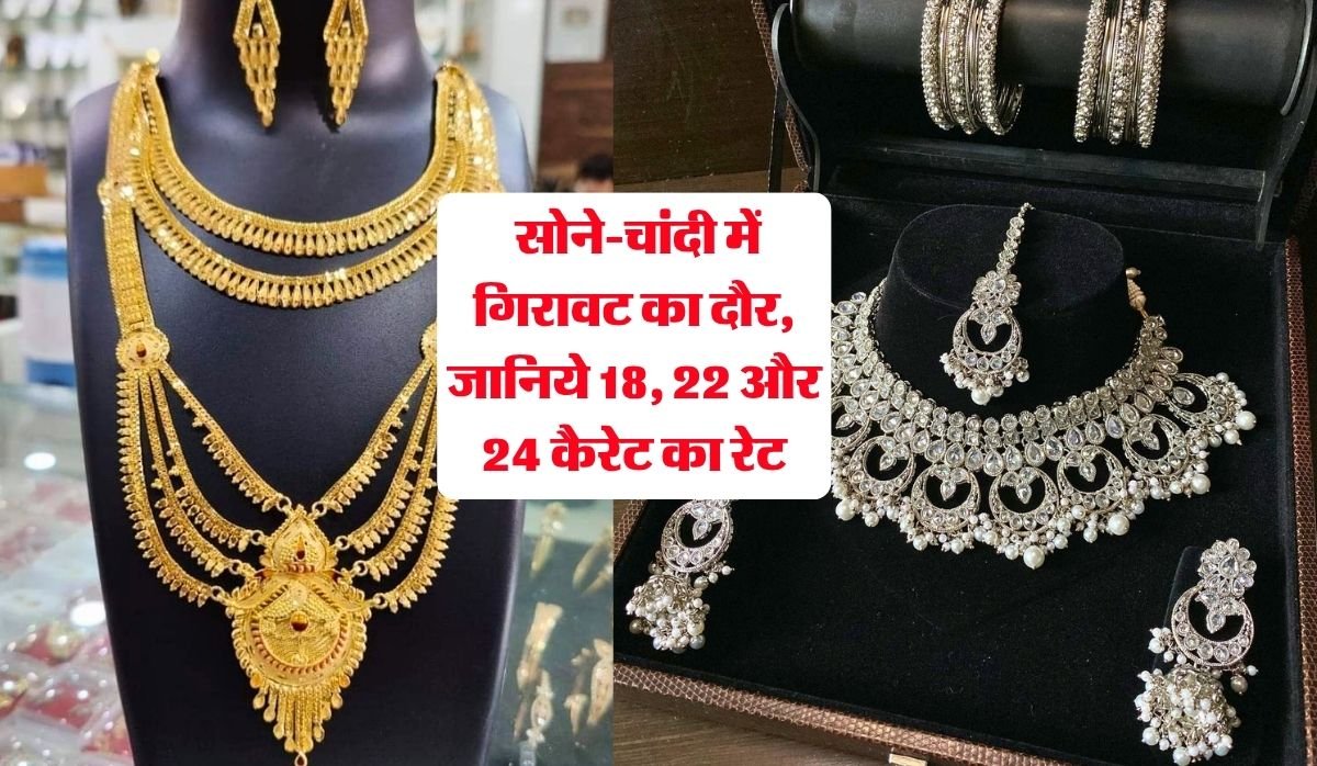 Gold Silver Rate : सोने-चांदी में गिरावट का दौर, जानिये 18, 22 और 24 कैरेट का रेट